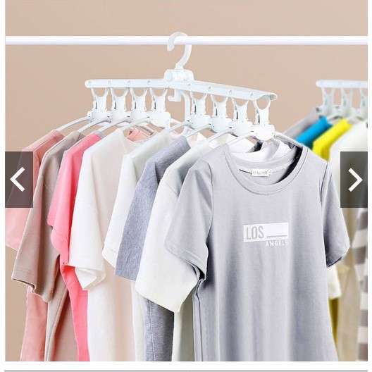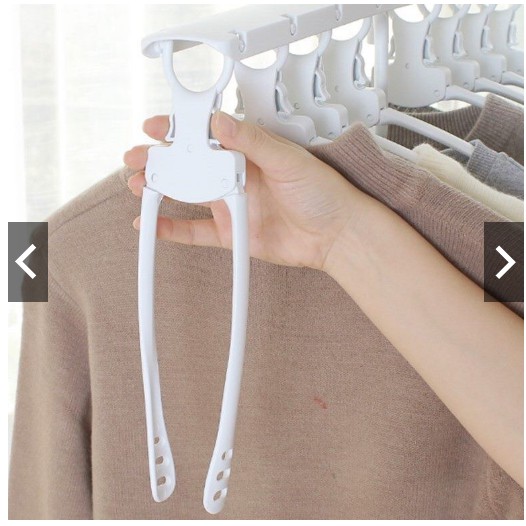 bạn có 1 chiếc giàn phơi thông minh, treo được tới 8 bộ quần áo. Khi gấp lại thì cực kỳ gọn, chỉ chiếm diện tích bằng 1 chiếc móc treo. Rất gọn cho những tủ quần áo nhỏ. Có 1 công tắc nhỏ, chỉ cần bấm 1 cái là móc sẽ cụp lại, giúp bạn lấy quần áo ra cực dễ.Ở giữa là 1 trục xoay 360°, rất tiện để thao tác. 2 đầu móc treo có những ô nhỏ, giúp cho quần áo ko bị tuột ra khỏi móc. Với bộ móc này, đảm bảo quần áo sẽ luôn phẳng phiu, không bị nhăn, ko bị dão phần cổ.