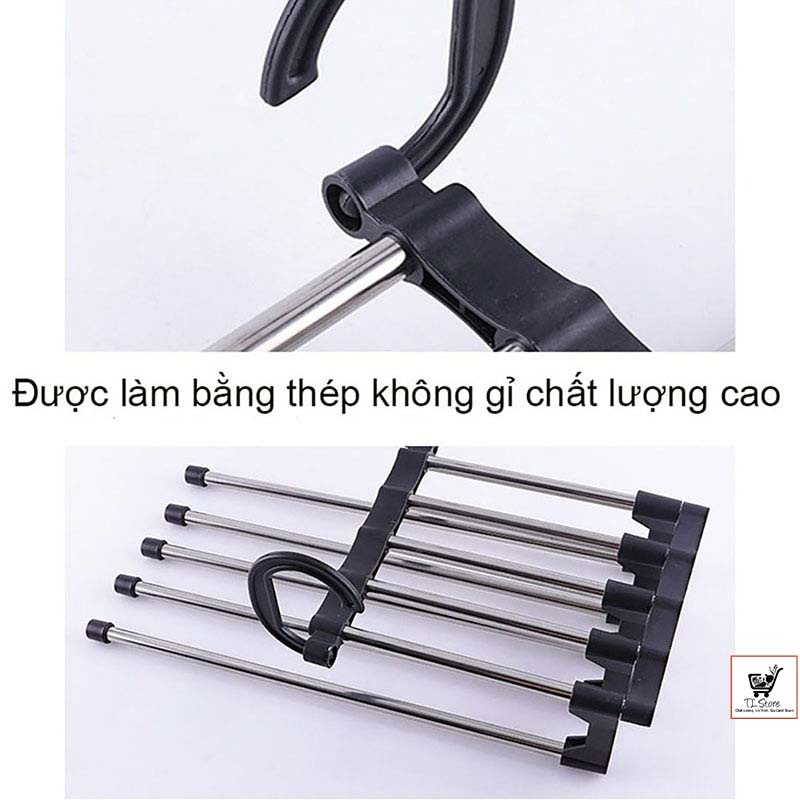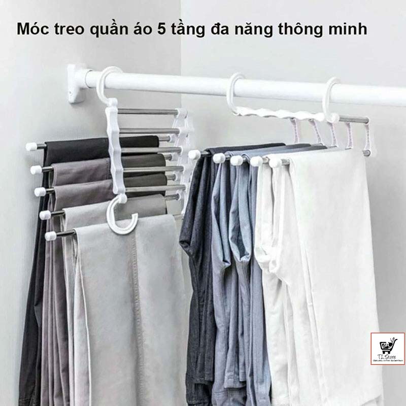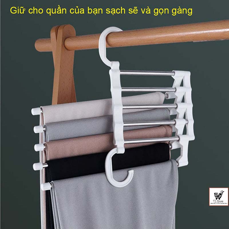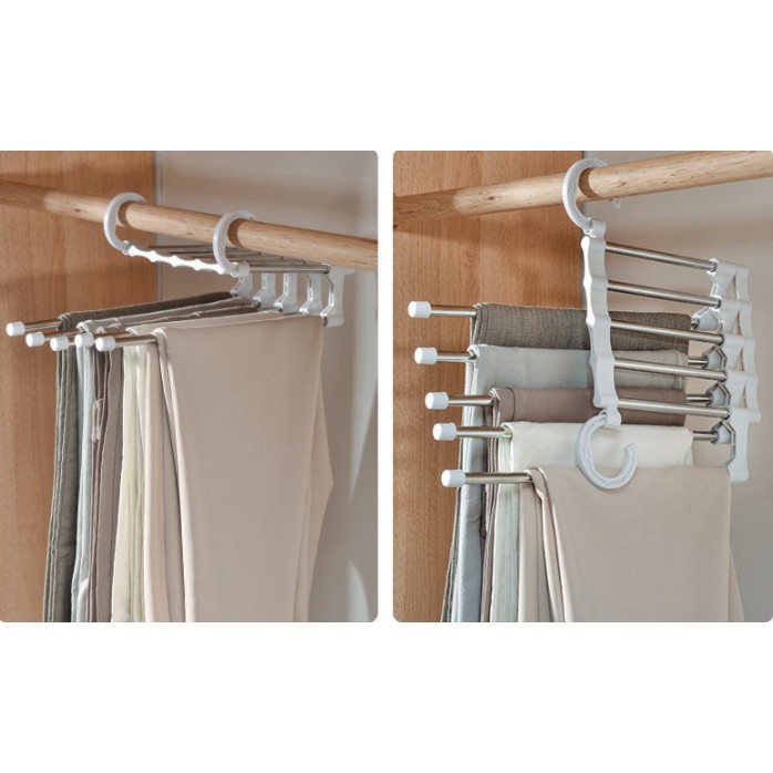 Móc treo quần áo thông minh được thiết kế 5 trong 1, giữ cho quần của bạn sạch sẽ và gọn gàng, tiết kiệm không gian một cách hiệu quả.