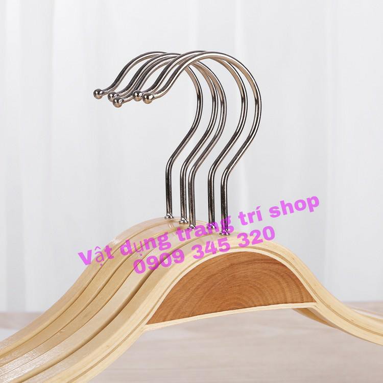 Móc gỗ treo móc quần áo, được làm từ gỗ ép nhiều lớp bền chắc, trọng lượng nhẹ. Đầu móc kim loại chắc chắn được xi mạ nên ít gỉ sét có thể đùng trong thời gian dài.Thích hợp cho treo móc quần áo trong gia đình các của hàng thời trang, áo cưới, khách sạn…