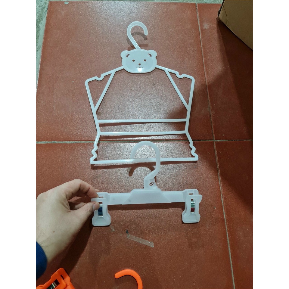 Nhà cửa & Đời sống > Sắp xếp nhà cửa > Mắc áo || móc treo quần áo trẻ em bằng nhựa giá rẻ - mắc kẹp quần manetti trẻ em màu cam, trắng, đen hàng loại 1Còn hàng