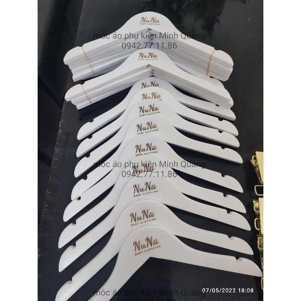 Nhà cửa & Đời sống > Sắp xếp nhà cửa > Mắc áo || móc treo quần áo trẻ em bằng gỗ màu trắng,cổ tròn,ngqng vai 32cm,có rãnh chống tuột,mắc treo đồ em bé,nhận khắc logoCòn hàng