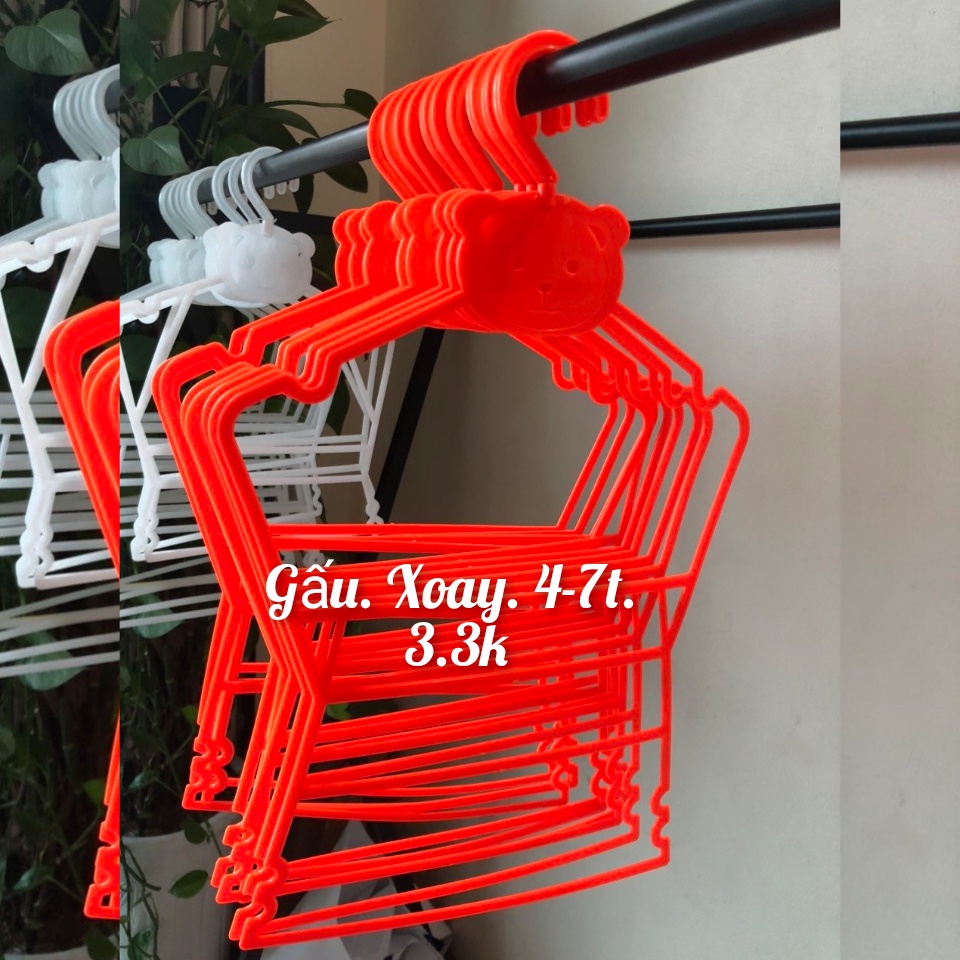 móc treo quần áo trẻ em hình mặt gấu,móc bộ gấu size 4-7 tuổi,đầu móc xoay tiện lợi,mắc nhựa trẻ em,bộ gấu cam to