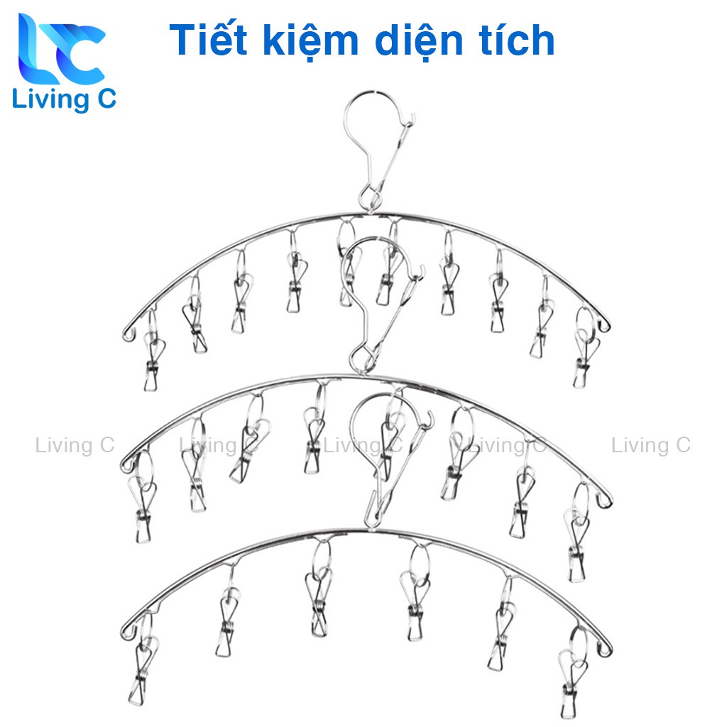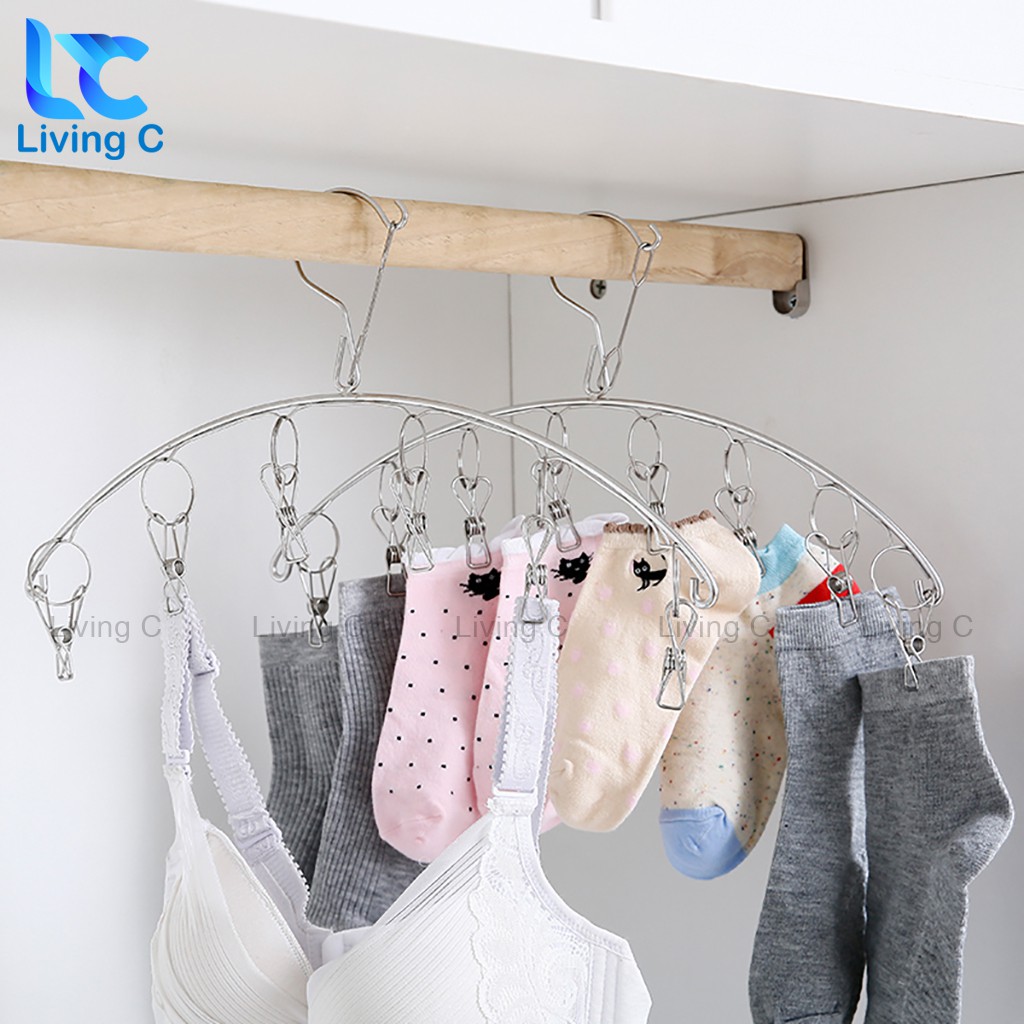 Nhà cửa & Đời sống > Sắp xếp nhà cửa > Mắc áo || Móc treo quần áo trẻ em Living C , móc Inox treo tất vớ đồ lót 8 kẹp chống rơi _M39Còn hàng