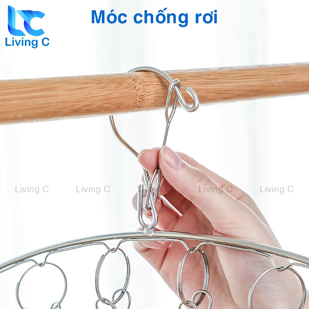 Móc treo quần áo trẻ em Living C , móc Inox treo tất vớ đồ lót 8 kẹp chống rơi _M39