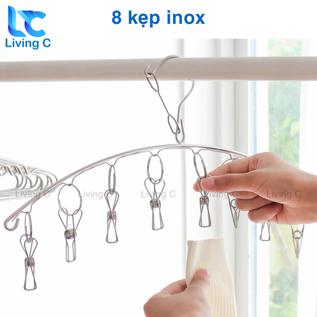 Móc treo quần áo trẻ em , móc Inox treo tất vớ đồ lót 8 kẹp chống rơi Living C* CAM KẾT TỪ SHOP: