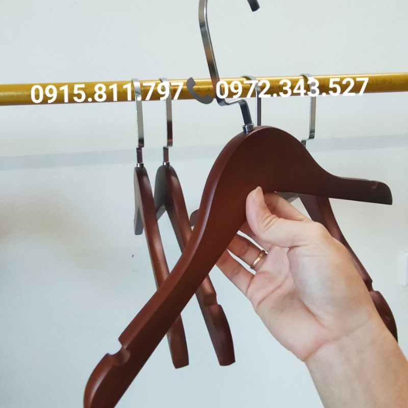 Móc gỗ nâu cao cấp treo quần,áo,váy trẻ em*THÔNG SỐ: