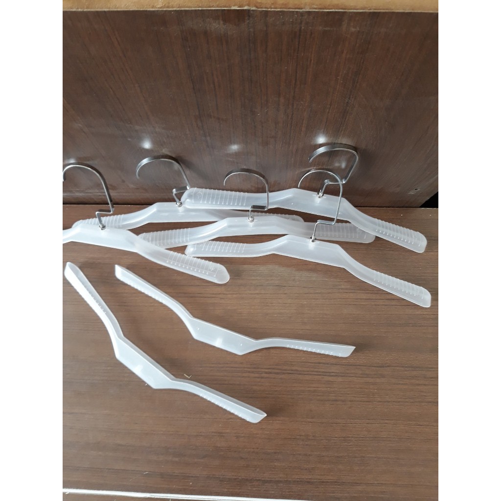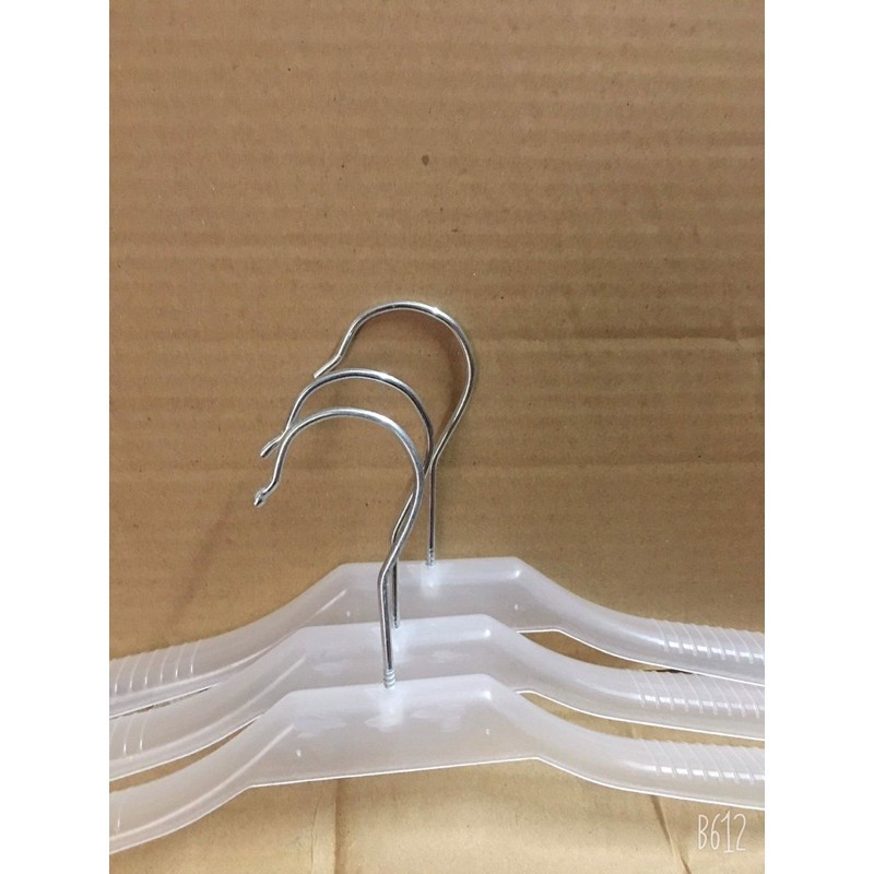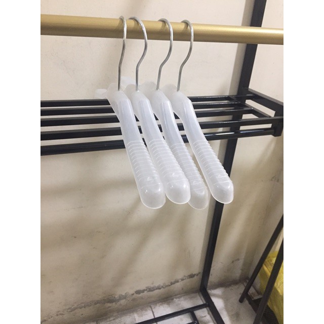Nhà cửa & Đời sống > Sắp xếp nhà cửa > Mắc áo || Móc treo quần áo trẻ em - móc nhựa trẻ em vai to màu trắng trong, kích thước dài 35cm, đầu móc xoay linh hoạt 360 độCòn hàng