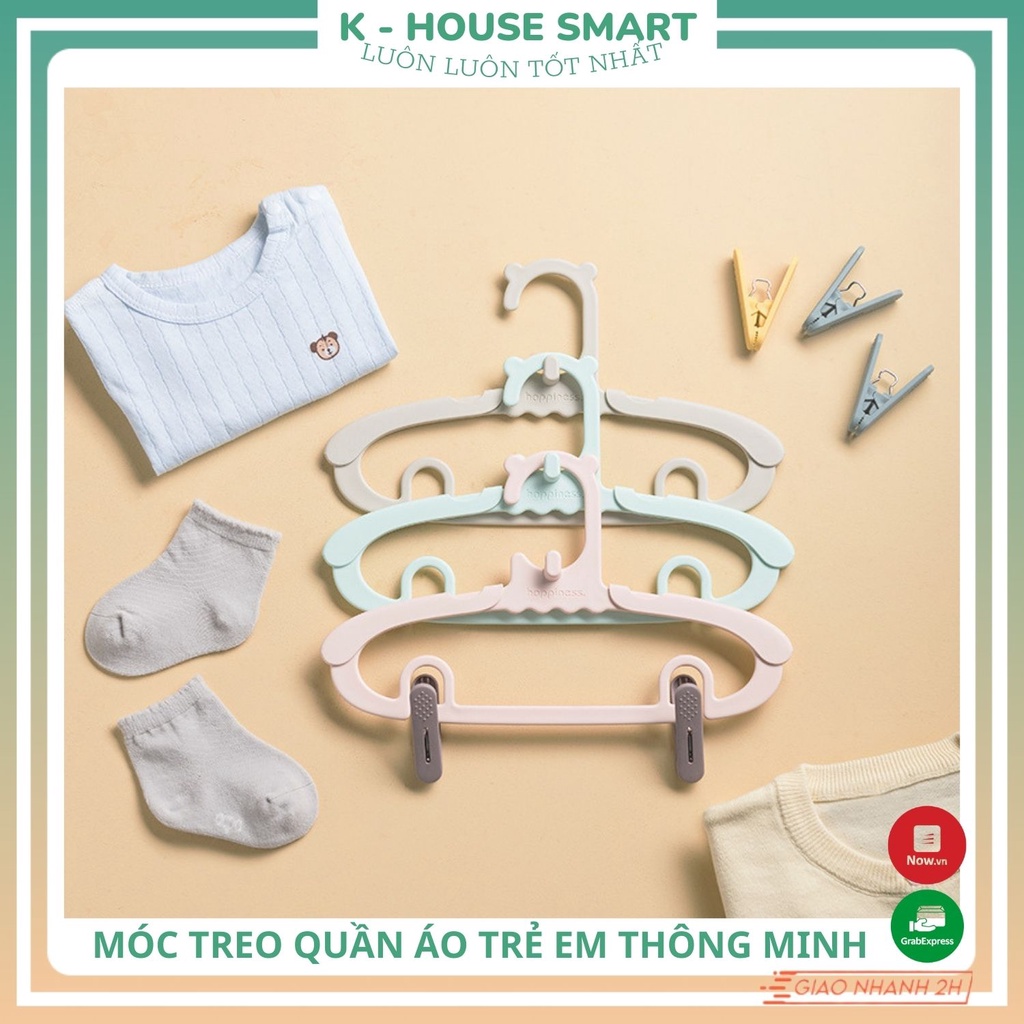 - Quần áo khăn mũ của bé sơ sinh được treo dễ dàng chắc chắn theo nhiều kiểu vì thiết kế móc đa dạng có kèm kẹp