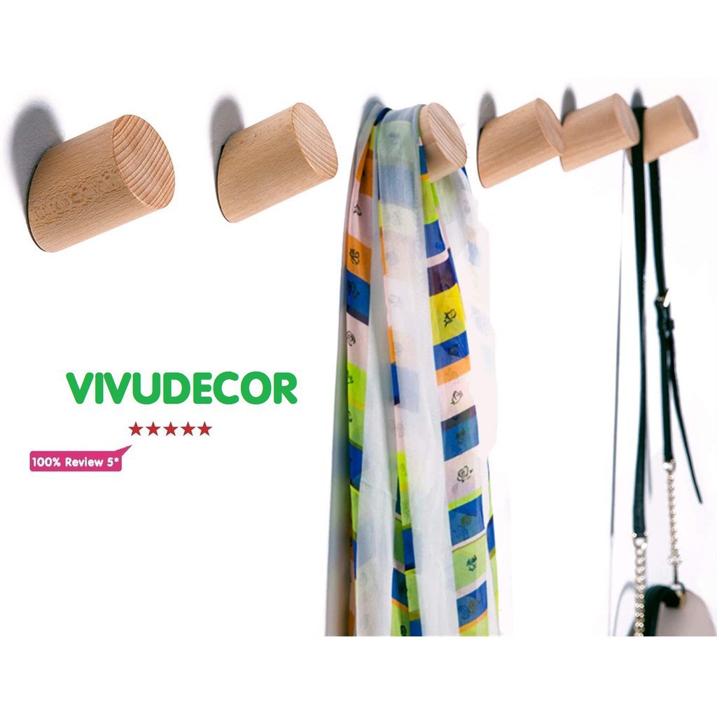 Giới thiệu Móc treo quần áo Vivudecor gỗ gắn tường decor phòng trang trí màu sồi 8cm vát