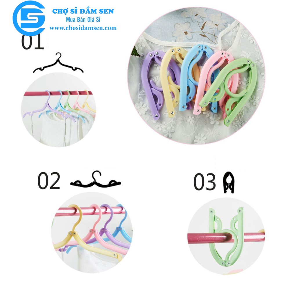 - móc áo có thiết kế xếp gọn độc đáo, ngoài việc sử dụng tại nhà, bạn có thể dễ dàng mang theo khi đi du lịch. - Chất liệu nhựa cứng cáp, chịu được lực treo nặng. - Giúp người dùng thoải mái treo, phơi phần áo cùng nhiều loại phụ kiện linh tinh: cà vạt, khăn tắm… - Tạo không gian sống đẹp mắt, tủ quần áo được sắp xếp gọn gàng hơn. Đặc biệt, quần áo dùng khi đi xa luôn được treo phẳng phiu, đẹp mắt
