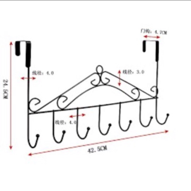 Móc treo đồ sau cửa bằng sắt uốn nghệ thuật, gồm 5 móc treo cực khỏe tiết kiệm không gian trong phòn.Dùng để treo áo quần, túi xách, khăn mặt, khăn tắm, ngoài ra có thể dùng để treo đồ dùng nón, áo khoác, dù,...