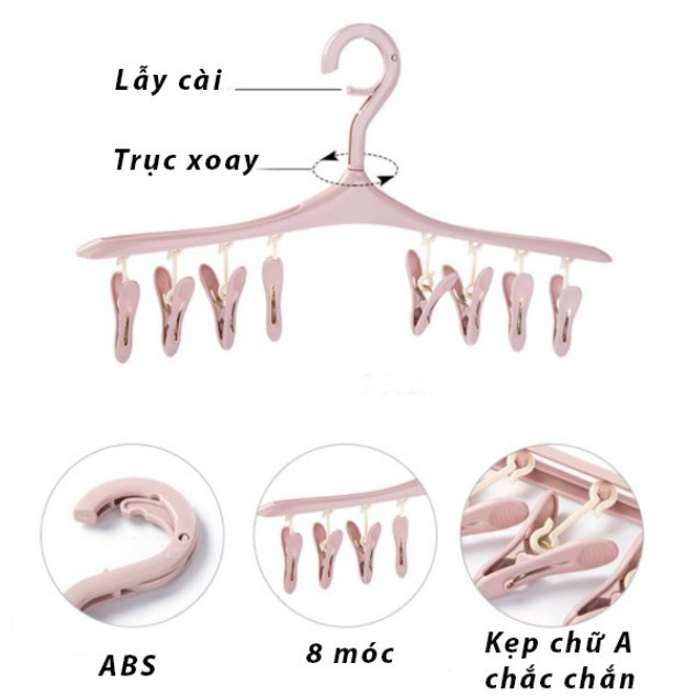 - Thiết kế với 8 kẹp giúp treo được cùng lúc nhiều đồnhư tất, quần áo sơ sinh, trẻ con, đồ lót,…tiết kiệm không gian.