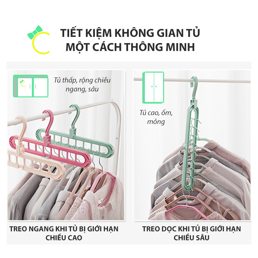 CÔNG DỤNG NỔI BẬT✅ Móc treo thông minh xoay 360 độ tiết kiệm không gian tủ quần áo cho phép treo thêm 9 móc áo khác vào mỗi lỗ
