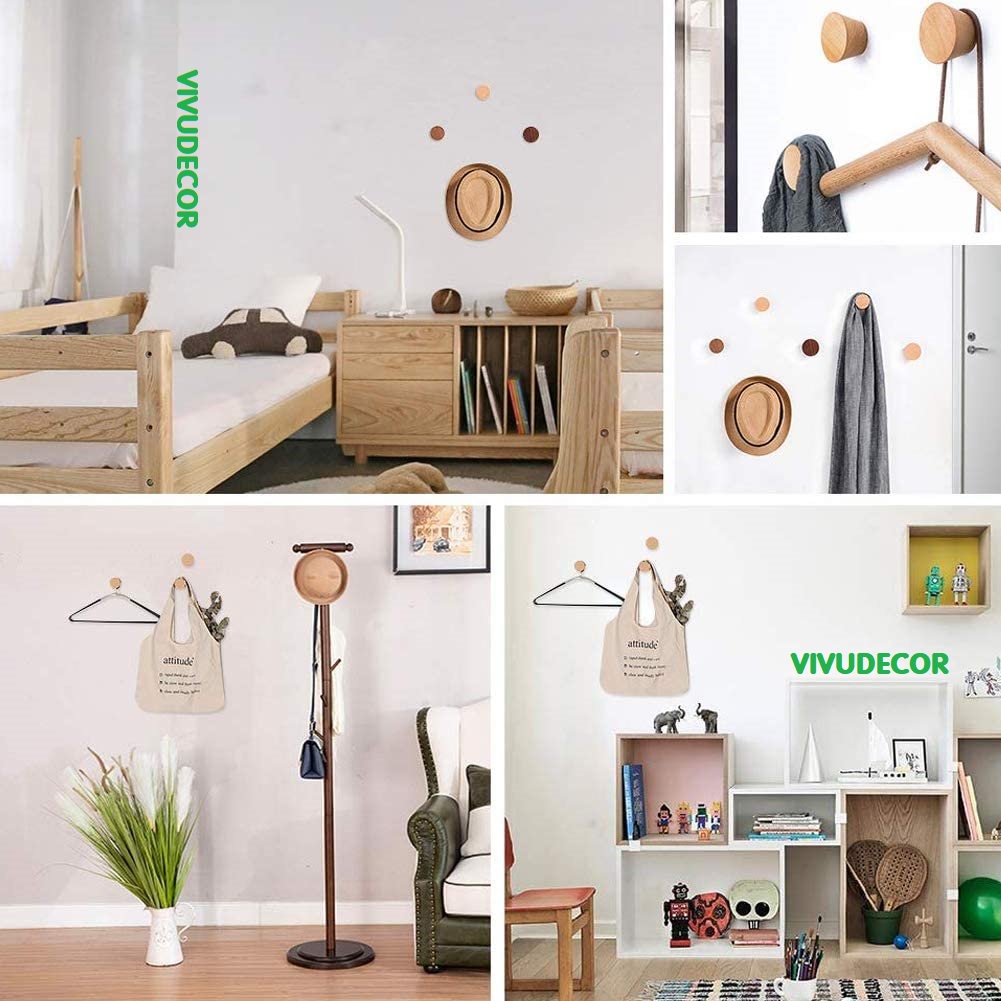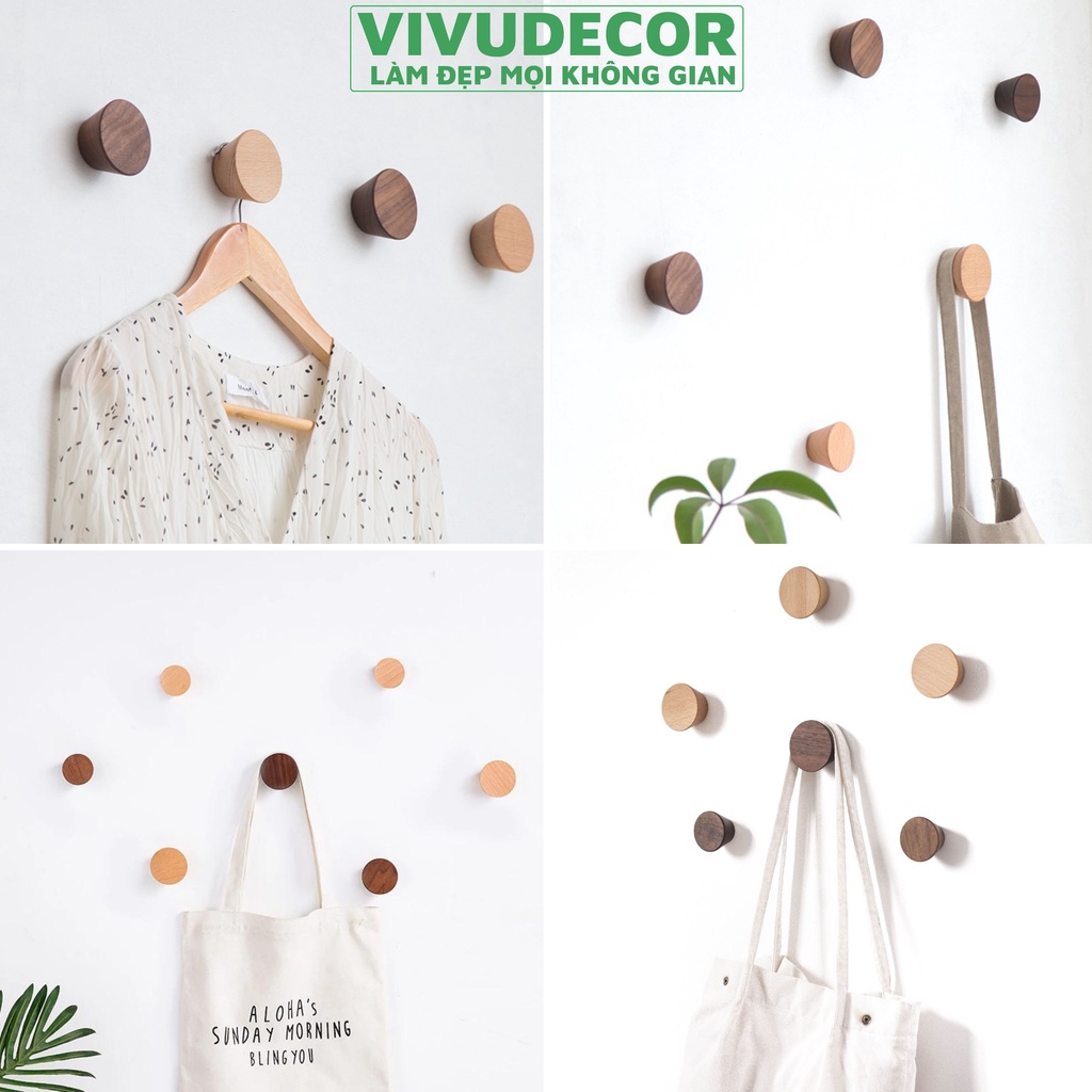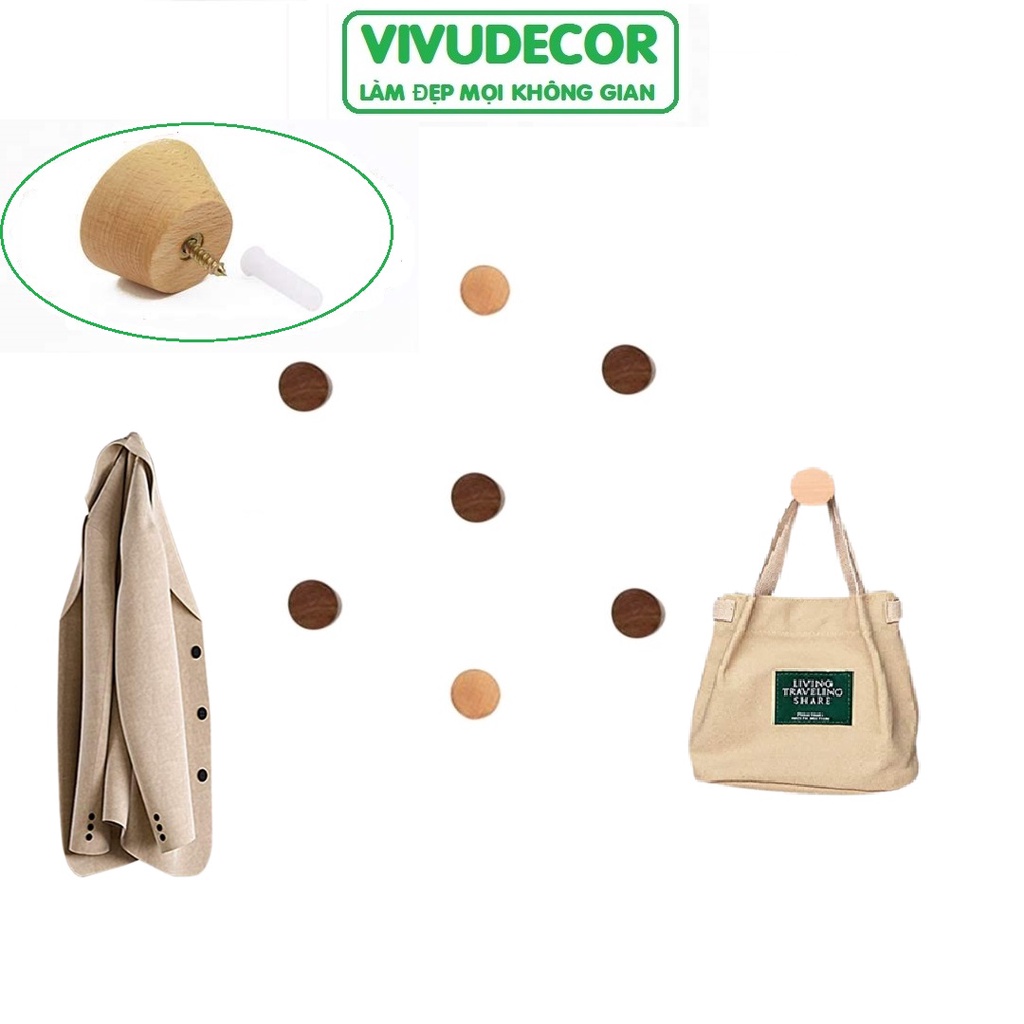 Nhà cửa & Đời sống > Sắp xếp nhà cửa > Móc treo || Móc treo tường Vivudecor hình nón đa năng vừa dán vừa khoan vít, Móc treo quần áo 100% gỗ tự nhiên.Còn hàng