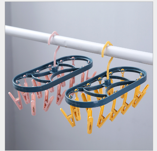 12 clip multifunctional hanger windproof clothespin household two-color children's socks rack multi-clip drying rack inner hanger
