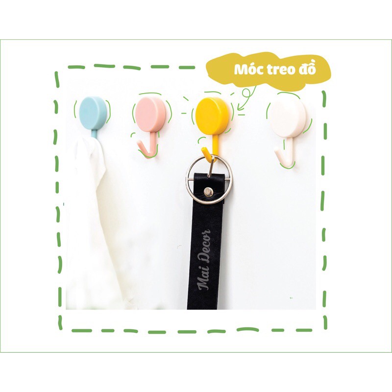 Móc dán trơn dán tường chịu lực đa năngMóc dán dùng để treo các vật dụng linh tinh, sắp xếp không gian nhà một cách gọn gàng, ngăn nắp. Móc dán trơn được thiết kế màu sắc tươi sáng, thích hợp các phong cách decor Hàn Quốc, đơn giản...