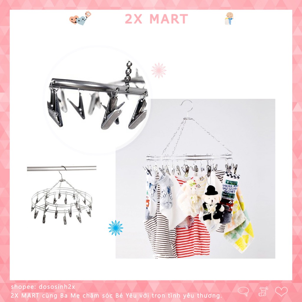 Móc tròn inox phơi đồ sơ sinh cho bé loại 20 kẹp, phơi tất, khăn, yếm, mũ, thóp - 2X MARTMóc tròn phơi đồ hàng sẵn các mẹ nha.