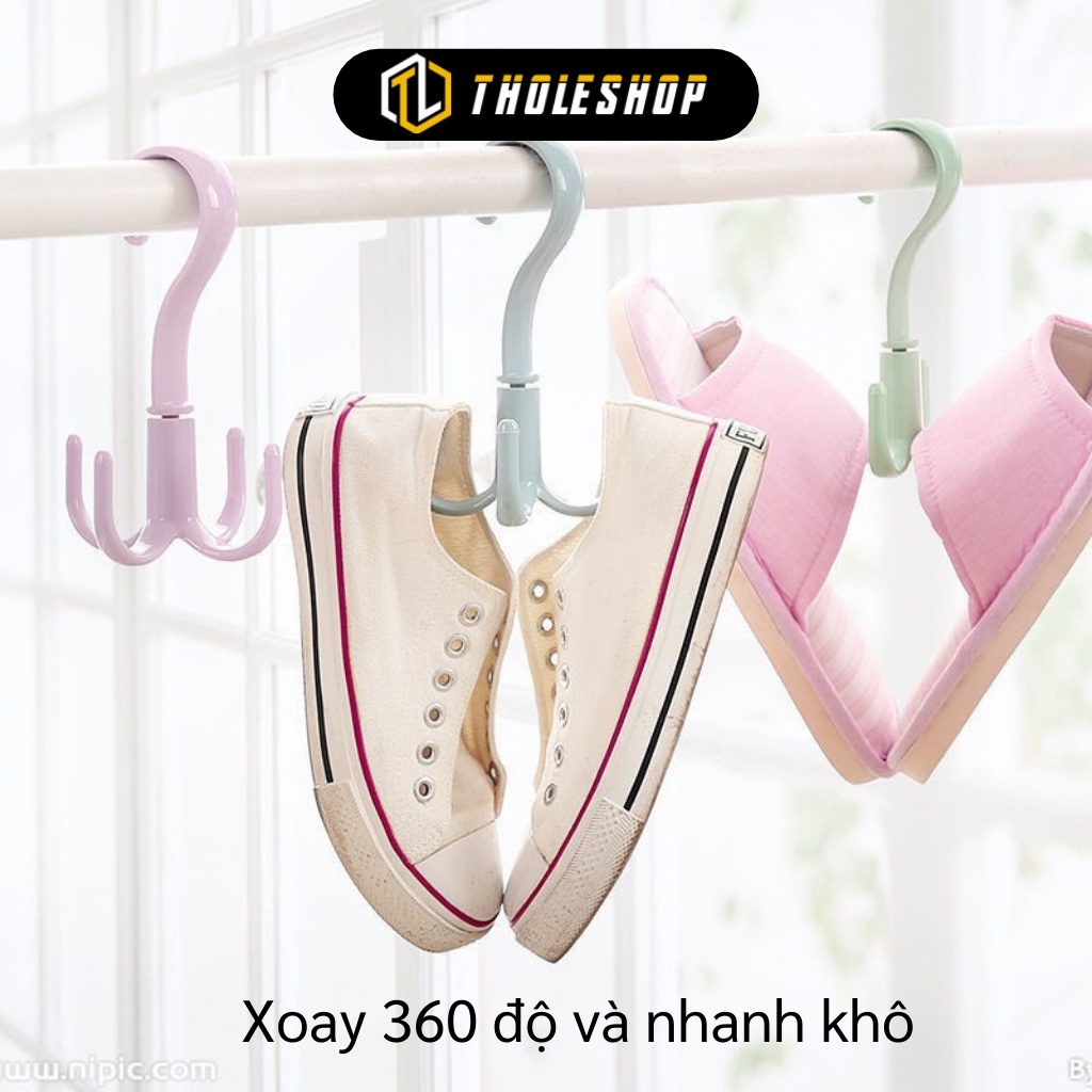 Giới thiệu Móc Tròn Xoay 360 - Móc Nhựa Treo Quần Áo, Vớ, Giày 4 Chấu Hình Móc Câu 8401