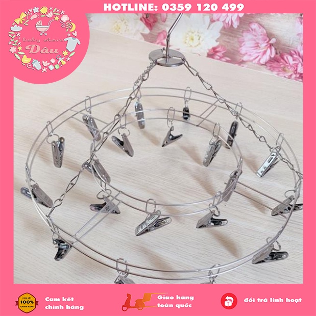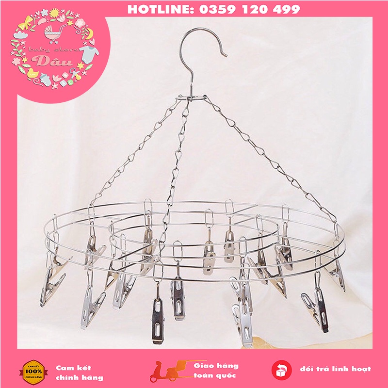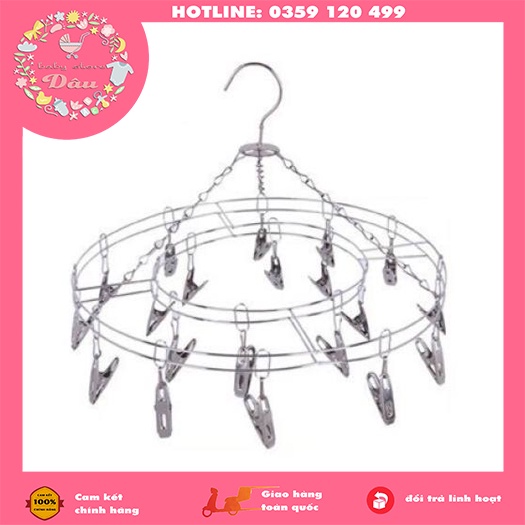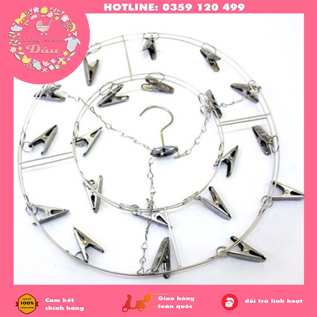 Móc tròn, móc chùm phơi quần áo chống gió inox ( Móc tròn, móc chùm treo quần áo trẻ em , móc inox, móc phơi quần áo ) Chất liệu : inox Số lượng kẹp : 20 cái Chống gió : là một sợi dây thép Độ dày : 2.5mm Trọng lượng : 350g Kích thước : 36x20cm Đặc điểm sản phẩm : thiết kế móc treo chống gió, móc theo có thể tháo rời.Móc tròn, móc chùm phơi quần áo chống gió inox ( Móc tròn, móc chùm treo quần áo trẻ em , móc inox, móc phơi quần áo )