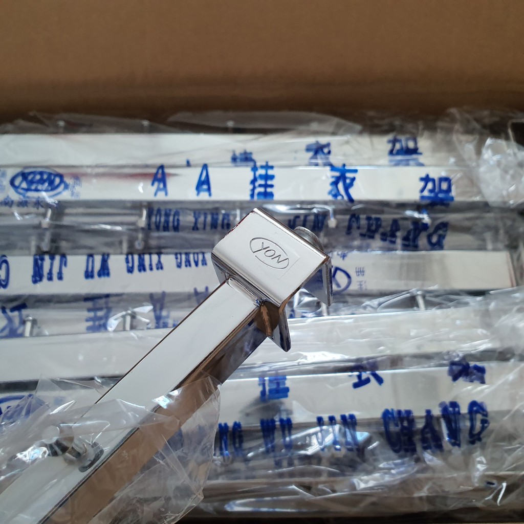 - Thiết kế dạng thanh treo vuông chắc chắn. trên thân thanh treo có các chốt chặn giúp quần áo không bị trôi, dồn về 1 phía.