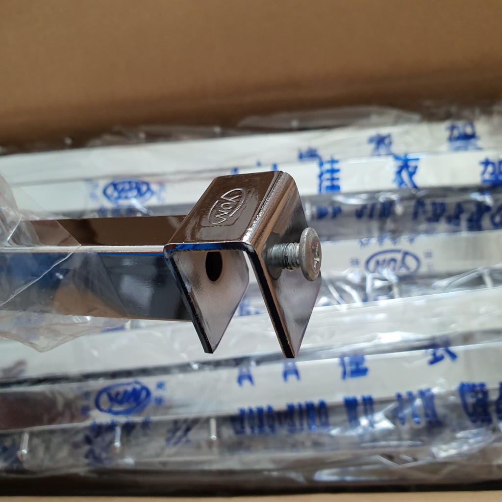 - Phần chân được làm để gắn vào thanh inox vuông 15*30mm. Phía sau có 1 ốc siết giúp thanh treo không di chuyển trong quá trình sử dụng.