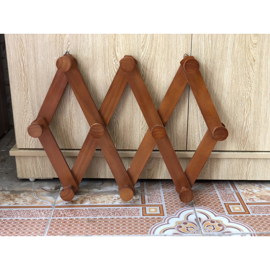 * Móc xếp treo quần áo bằng gỗ thiết kế thông minh với 10 đầu treo chắc chắn giúp bạn xắp xếp quần áo một cách gọn gàng, ngăn nắp.Kiểu dáng hình thoi khi kéo dãn, có thể gấp gọn gàng khi không sử dụng giúp bạn tiết kiệm không gian.