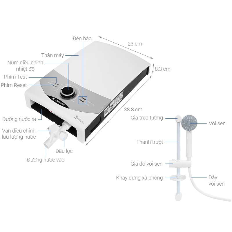 Giới thiệu Model 2021 Bình Nóng Lạnh Trực Tiếp Ariston SM45E SBS-VN 4500W - Không Bơm, Dây Sen, Bát Sen 3 Chế Độ