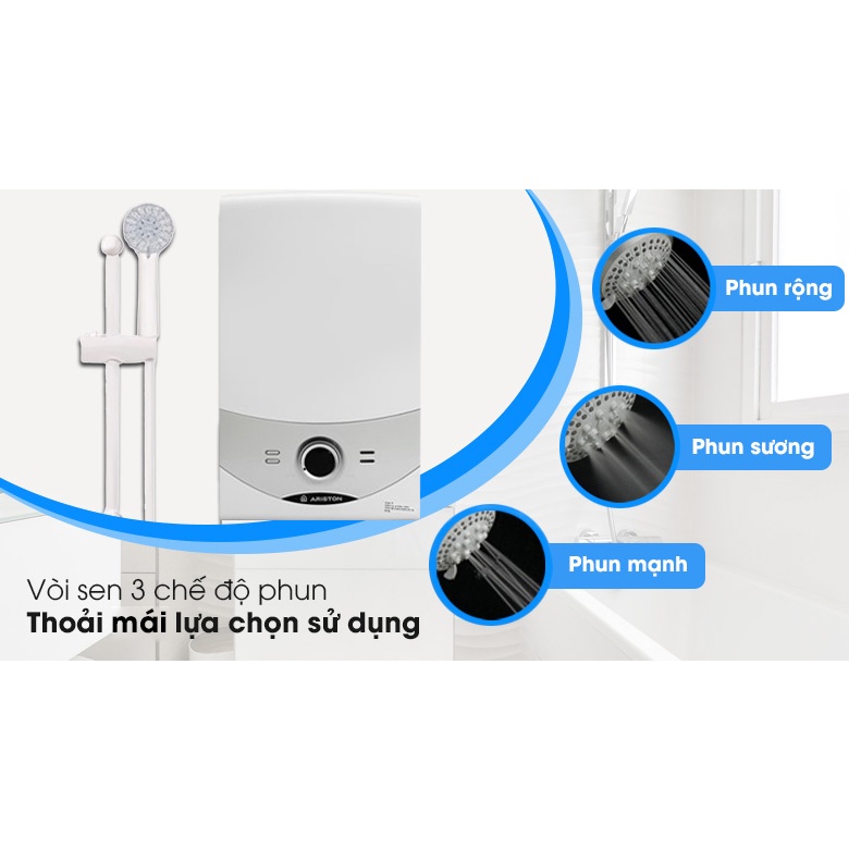 Model 2021 Bình Nóng Lạnh Trực Tiếp Ariston SM45E SBS-VN 4500W - Không Bơm, Dây Sen, Bát Sen 3 Chế Độ