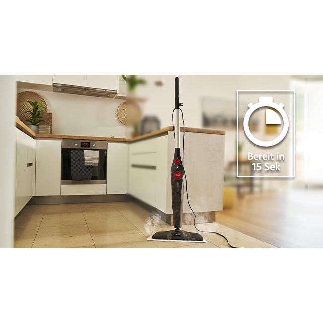 - Đặc biệt cây lau nhà hơi nước Vileda có thể sử dụng trên tất cả các loại chất liệu sàn: từ sàn gạch, đá đến sàn gỗ, và cả thảm. Bạn có thể điều chỉnh tự do liều lượng của hơi nước, với sàn gạch và đá hơi nước mạnh hơn là sàn gỗ.
