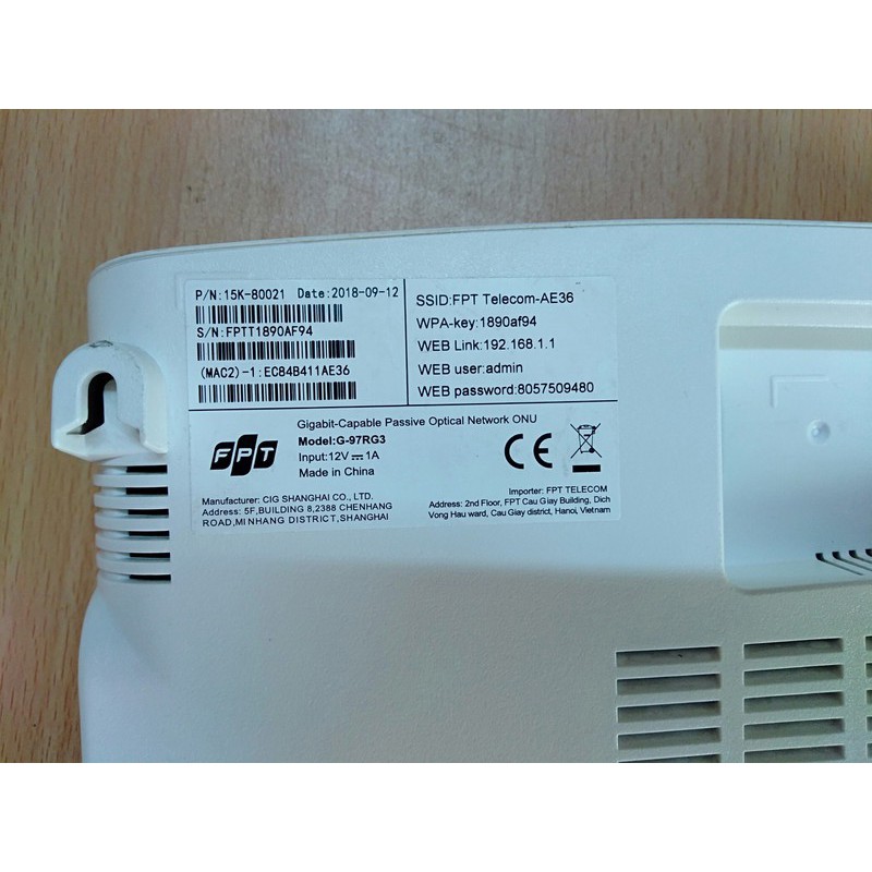 Máy tính & Laptop > Thiết Bị Mạng > Bộ Phát Wifi || Modem Phát Wifi Quang Gigabit F.P.T G-97RG3 , 3 Râu Ngầm , 4 Cổng LAN (Cũ)Còn hàng