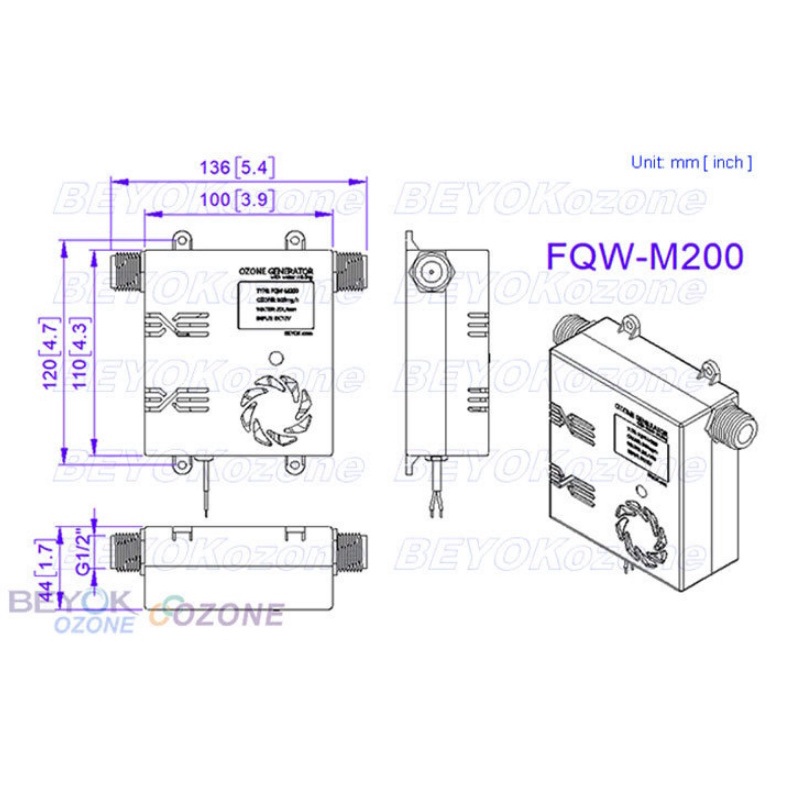 Modul tạo ozone FQW-M200 là một thiết kế độc đáo kết hợp buồng phóng điện tạo ozone và bộ trộn ejector để tạo ra sản phẩm cuối cùng là nước ozone có nồng độ 0,6 - 2,0ppm có nhiều ứng dụng