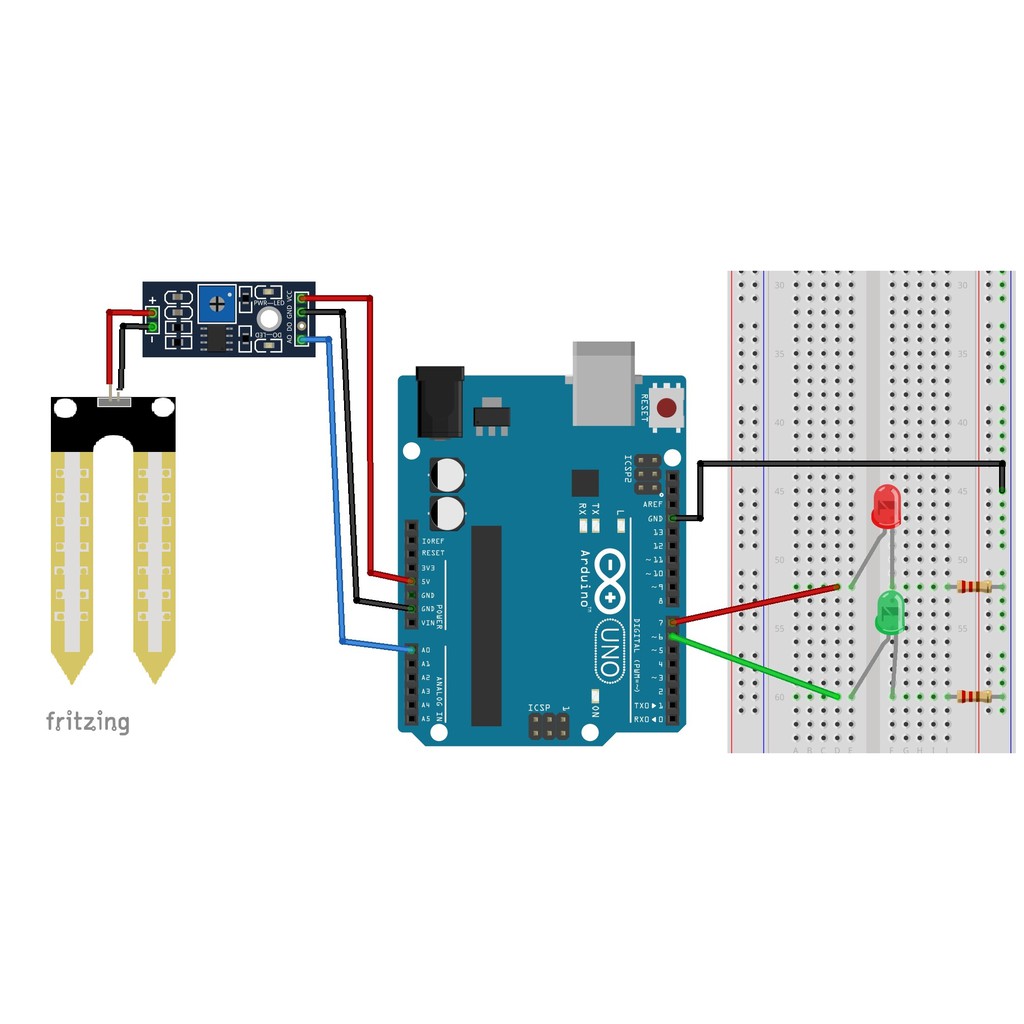 Module Cảm Biến Độ Ẩm Đất sử dụng IC chính LM393, là một cảm biến độ ẩm đất kỹ thuật số dễ sử dụng. Chỉ cần lắp cảm biến vào đất và nó có thể đo hàm lượng độ ẩm hoặc mực nước trong đó. Nó cho đầu ra kỹ thuật số 5V khi độ ẩm cao và 0V khi độ ẩm trong đất thấp.- Cảm biến bao gồm một biến trở để đặt ngưỡng độ ẩm mong muốn. Đầu ra kỹ thuật số có thể được kết nối với một bộ điều khiển vi mô để cảm nhận mức độ ẩm. Cảm biến cũng xuất ra một đầu ra tương tự có thể được kết nối với ADC của bộ điều khiển vi mô để có được mức độ ẩm chính xác trong đất, phù hợp để thực hiện các dự án làm vườn bằng nước, cảm biến nước, v.v.
