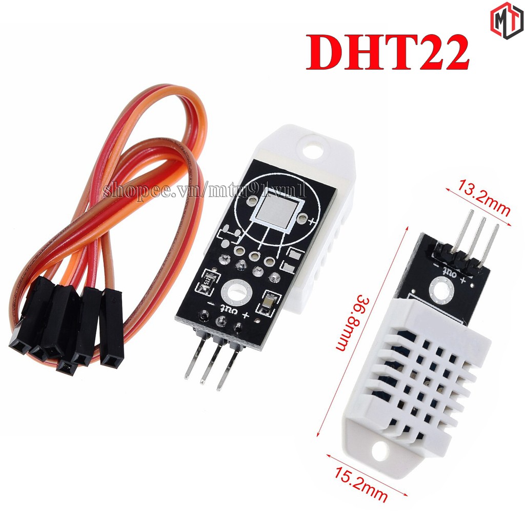Module Cảm biến nhiệt độ độ ẩm DHT22 là cảm biến thông dụng tích hợp vừa đo được nhiệt độ và độ ẩm, độ chính xác khá cao. Giao tiếp với vi điều khiển qua chuẩn giao tiếp 1 dây.Cảm biến độ ẩm nhiệt độ DHT22 ra chân được tích hợp sẳn điện trở 5.1 KOhm giúp người dung kết nối và sử dụng đơn giản hơn cảm biến DHT22 chưa ra chân. So với DHT11 thì DHT22 có độ chính xác cao và khoảng đo hoạt động rộng hơn. Module truyền dữ liệu thông qua giao tiếp 1 dây nên dễ dàng kết nối và lấy dữ liệu. Module được thiết kế hoạt động ở mức điện áp 5V.