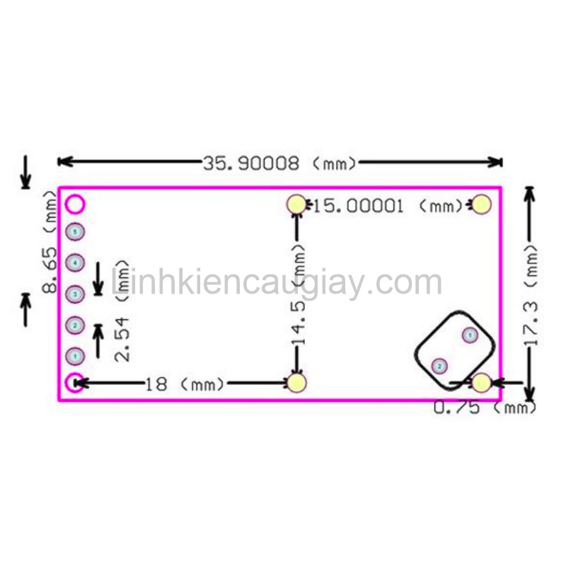 R_GN: Đây là vị trí gắn điện trở chỉnh khoảng cách phát hiện vật cản, nếu không có điện trở thì khoảng cách mặc định là 7m, nếu nối điện trở 1MOhm thì khoảng cách phát hiện vật cản giảm xuống còn 5m, giá trị điện trở càng nhỏ thì khoảng cách phát hiện càng gần.