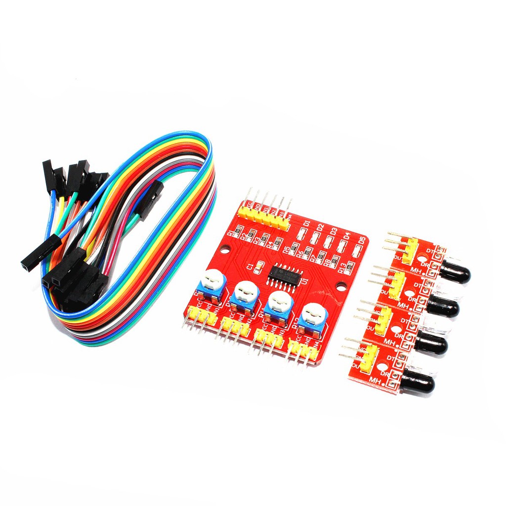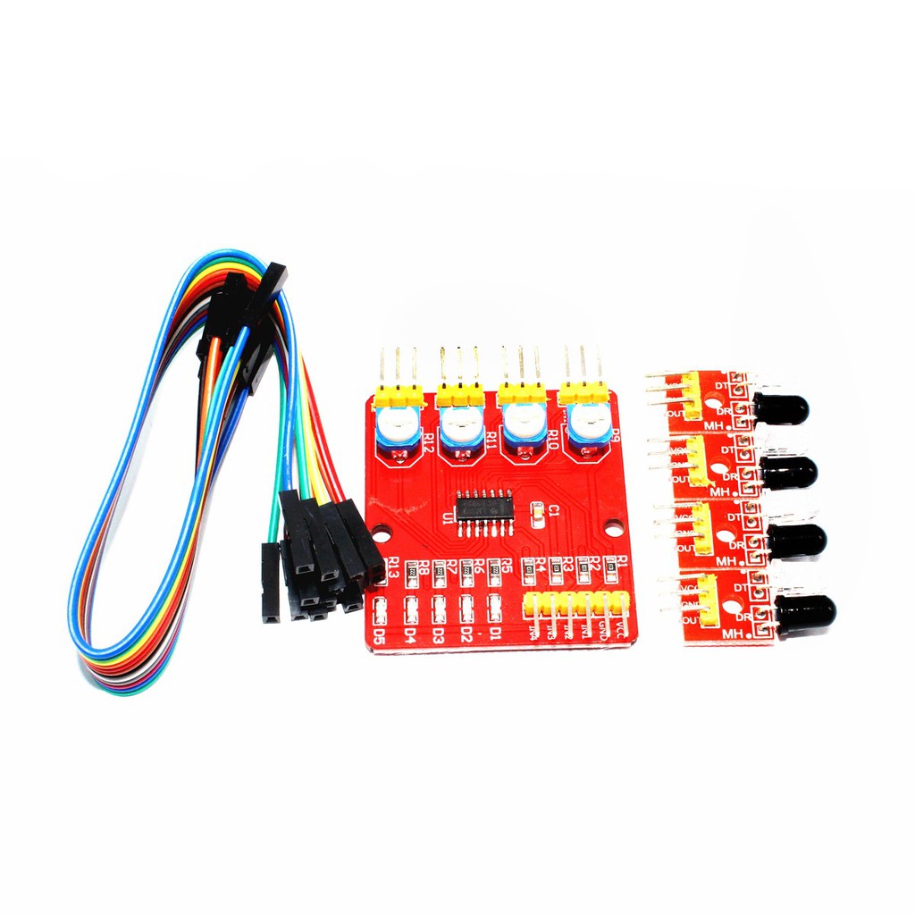 Mô tảModule cảm biến vật cản hồng ngoại 4 kênh có cách sử dụng giống Module cảm biến vật cản hồng ngoại 1 kênh .Nhưng được tích hợp 4 kênh trên cùng 1 board mạch với 4 đầu cảm biến riêng biệt. Giúp cho hệ thống cần nhiều đầu cảm biến được gọn nhẹ, tập trung hơn. Có thể chỉnh độ nhạy cho từng kênh bằng biến trở. Có đèn báo cho mỗi cảm biến.