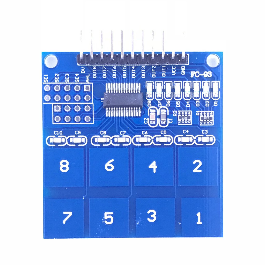 8 phím cảm ứng điện dung, tín hiệu tương ứng với 8 ngõ ra.