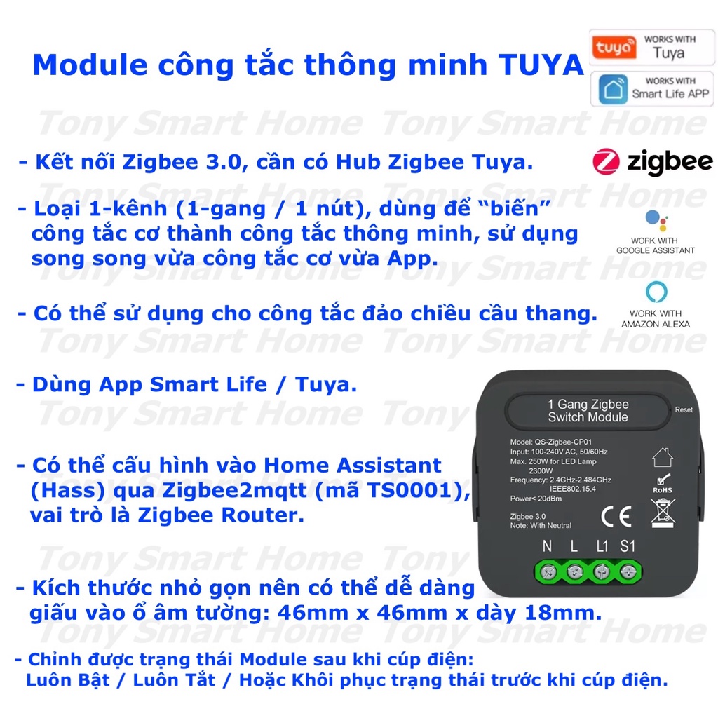 Giới thiệu Module công tắc thông minh Wifi / Zigbee 3.0, hệ Tuya / Smart Life / Home Assistant (Hass) -