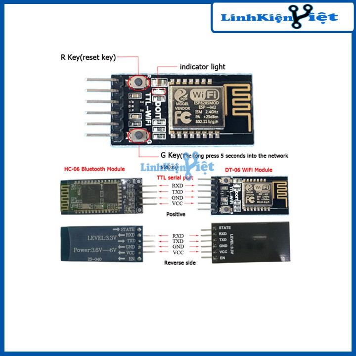Máy tính & Laptop > Thiết Bị Mạng > Bộ Thu Wifi || Module DT-06 TTL-WIFI / ESP-M2/Tương Thích Bluetooth HC06Còn hàng