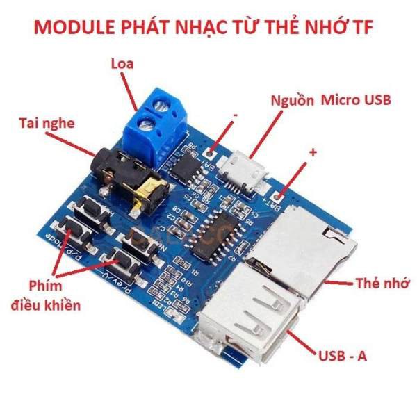 Module có các phím bấm chức năng: NEXT/V+, Play/STOP, PREV/V- để người dùng dễ dàng sử dụng.