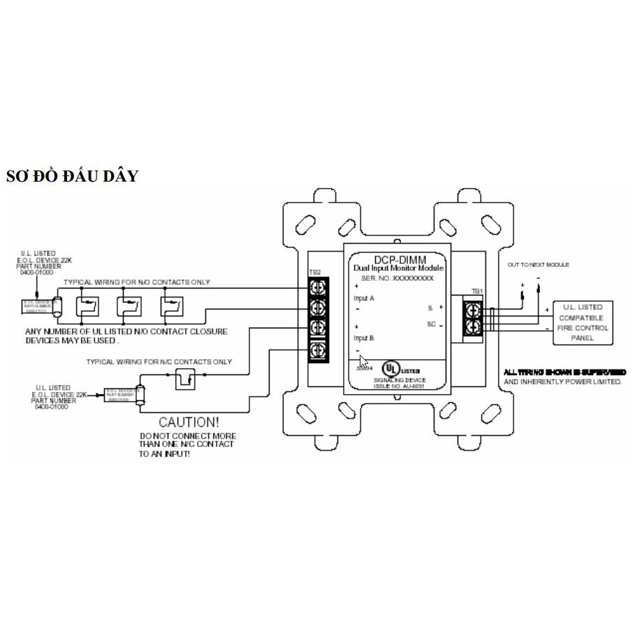 Modul DCP- DIMM dùng để tiết kiệm địa chỉ. Thường sử dụng để giám sát công tắc dòng chảy, các loại valve, quạt hút, quạt tạo áp, máy bơm, tủ điện, tiết điểm thường đóng hoặc hở..... đưa tín hiệu về trung tâm báo cháy dạng báo cháy, báo giám sát, báo lỗi, ngắn mạch, hở mạch...Thông số kĩ thuật: