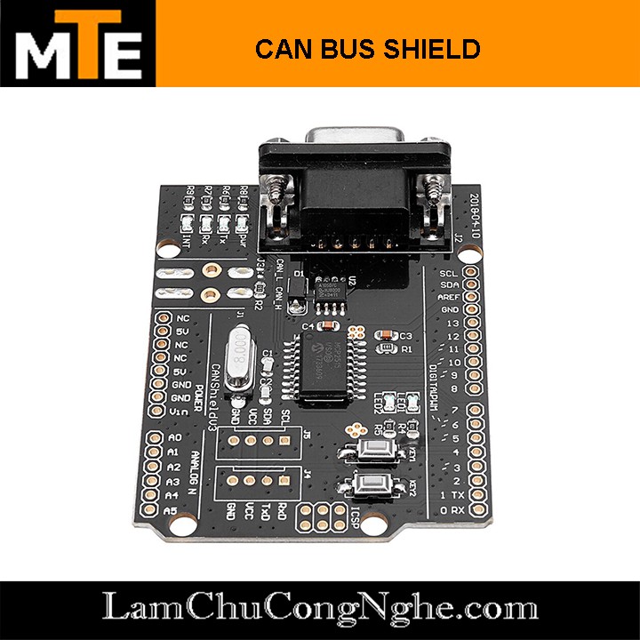 Board Arduino CAN-BUS shield sử dụng IC MCP2515 từ Microchip và bộ thu tín hiệu Bus CAN TJA1050 giúp việc giao tiếp với các vi điều khiển, hoặc các board mạch phát triển hiện nay, đặc biệt là Arduino được dễ dàng với chuẩn giao tiếp SPI.
