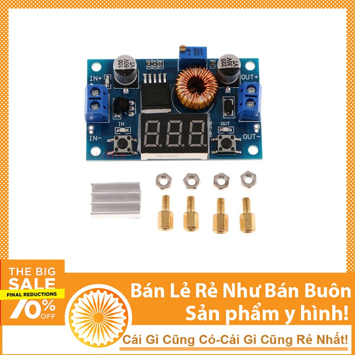 - Module hạ áp 5A có hiển thị có chức năng điều chỉnh điện áp ra theo yêu cầu sử dụng của người dùng trong dải điện áp từ 1.25 đến 32 V với dòng Max 5A. Trên module có các led báo và Led hiển thị thông số của điện áp in/out. Module có kích thước nhỏ gọn nên có thể tích hợp dễ dàng trên các robot, các sản phẩm yêu cầu nhỏ gọn...