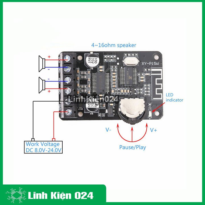 Module Khuếch Đại Âm Thanh Bluetooth Stereo 30W/40W Công Suất Cao XY-P15WModule Khuếch Đại Âm Thanh Bluetooth Stereo là mạch khuếch đại tầm trung đi kèm Bluetooth phiên bản 5.0, công suất 30/40W thích hợp nghe nhạc trong phòng nhỏ đến vừa. Module khuếch đại có dải điện áp rộng, dễ tìm nguồn phù hợp, thiết kế mạch đẹp, hoàn thiện tốt.