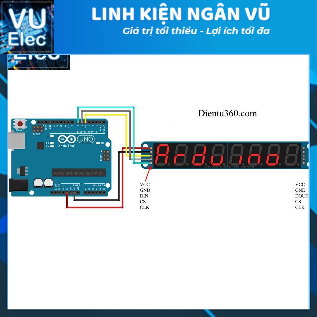 - Module LED 7 đoạn sử dụng IC ghi dịch MAX7219, module có thể hiển thị tối đa 8 LED 7 đoạn