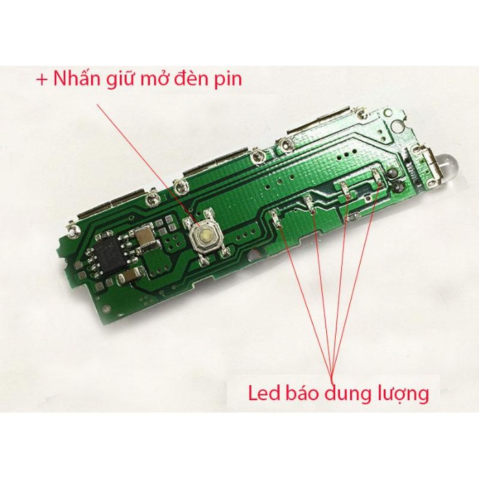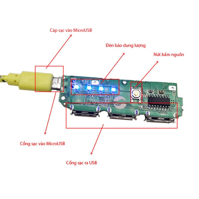 Tích hợp sẵn cổng sạc in MicroUSB + 3 Cổng sạc out USBSử dụng Pin 3v7( Cell Li-on , Lithium )