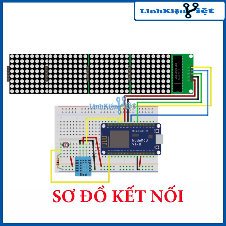 Cấu tạo: Module Led Matrix 8x32 kết hợp 4 led Matrix 8x8. Mỗi led được kết nối với một IC đệm Max7219 của hãng Maxim. Bốn IC này được kết nối nối tiếp với nhau và giao tiếp với bộ xử lí theo chuẩn truyền thông I2C.