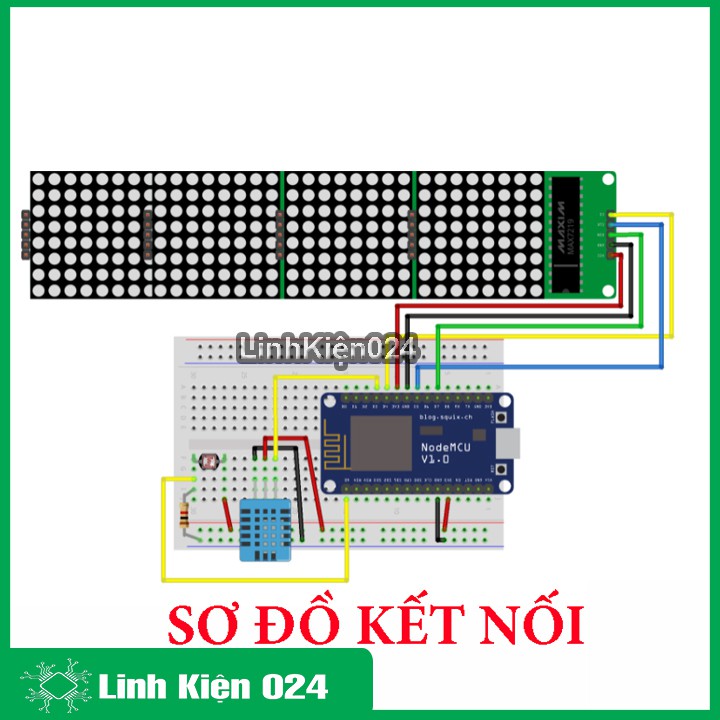 Cấu tạo: Module Led Matrix 8x32 kết hợp 4 led Matrix 8x8. Mỗi led được kết nối với một IC đệm Max7219 của hãng Maxim. Bốn IC này được kết nối nối tiếp với nhau và giao tiếp với bộ xử lí theo chuẩn truyền thông I2C.