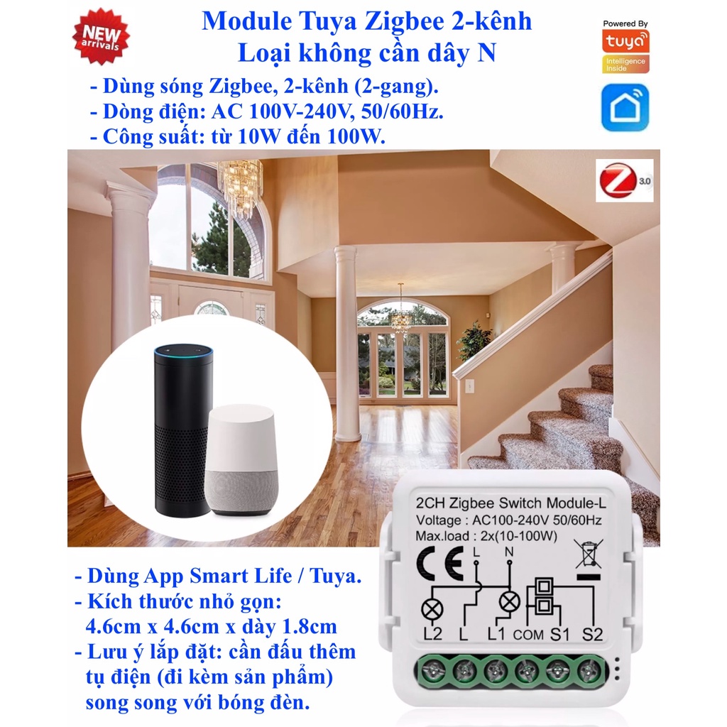 Giới thiệu Module (Mô đun) công tắc Zigbee / Wifi không cần dây N (dây Nguội), App Smart Life / Tuya / Home Assistant. Mẫu 0 -