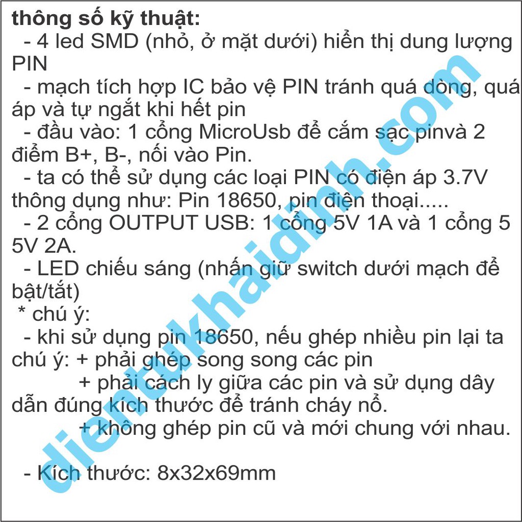 Giới thiệu module nâng áp làm sạc dự phòng, out: USB 5V1A, 2A, in:3.7-5V kde3561