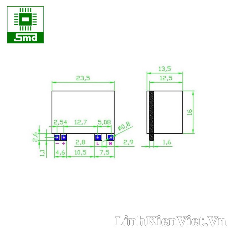 Kích thước:23.5 x 16 x13.5mm